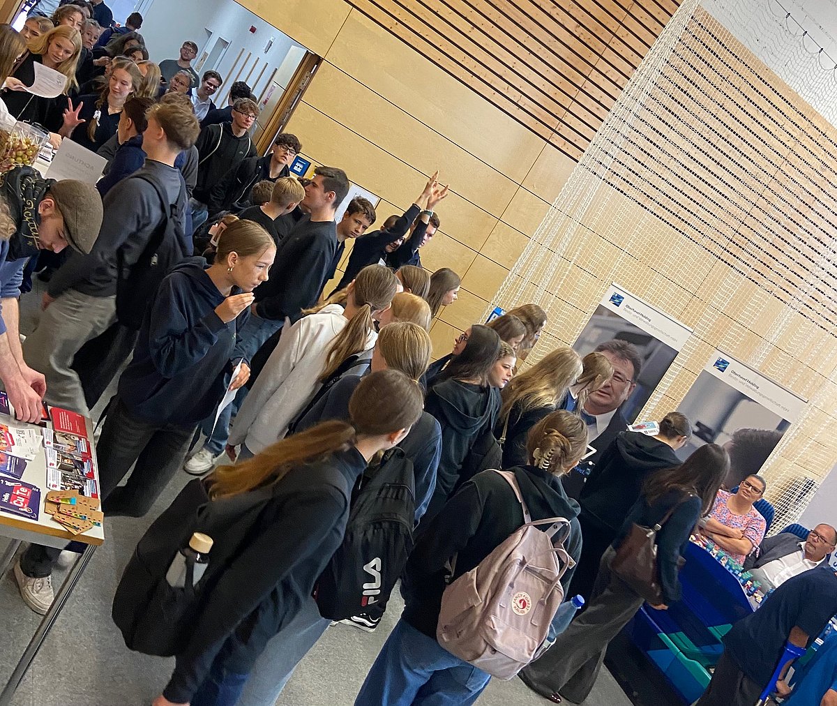 Am Freitag 19.09.2025 fand die Veranstaltung "Mosaik meets Market" mit reger Beteiligung aller Jugendlichen und Lehrkräfte am Mosaik Gymnasium statt. Dabei hatten Schülerinnen und Schüler die Gelegenheit, bei verschiedenen Formaten regionale Unternehmen kennenzulernen. Ob im Speedmatching, der Messe oder in Interviews - die Jugendlichen konnten viel über Job- und Praktikumsmöglichkeiten der über 30 Firmen erfahren.
